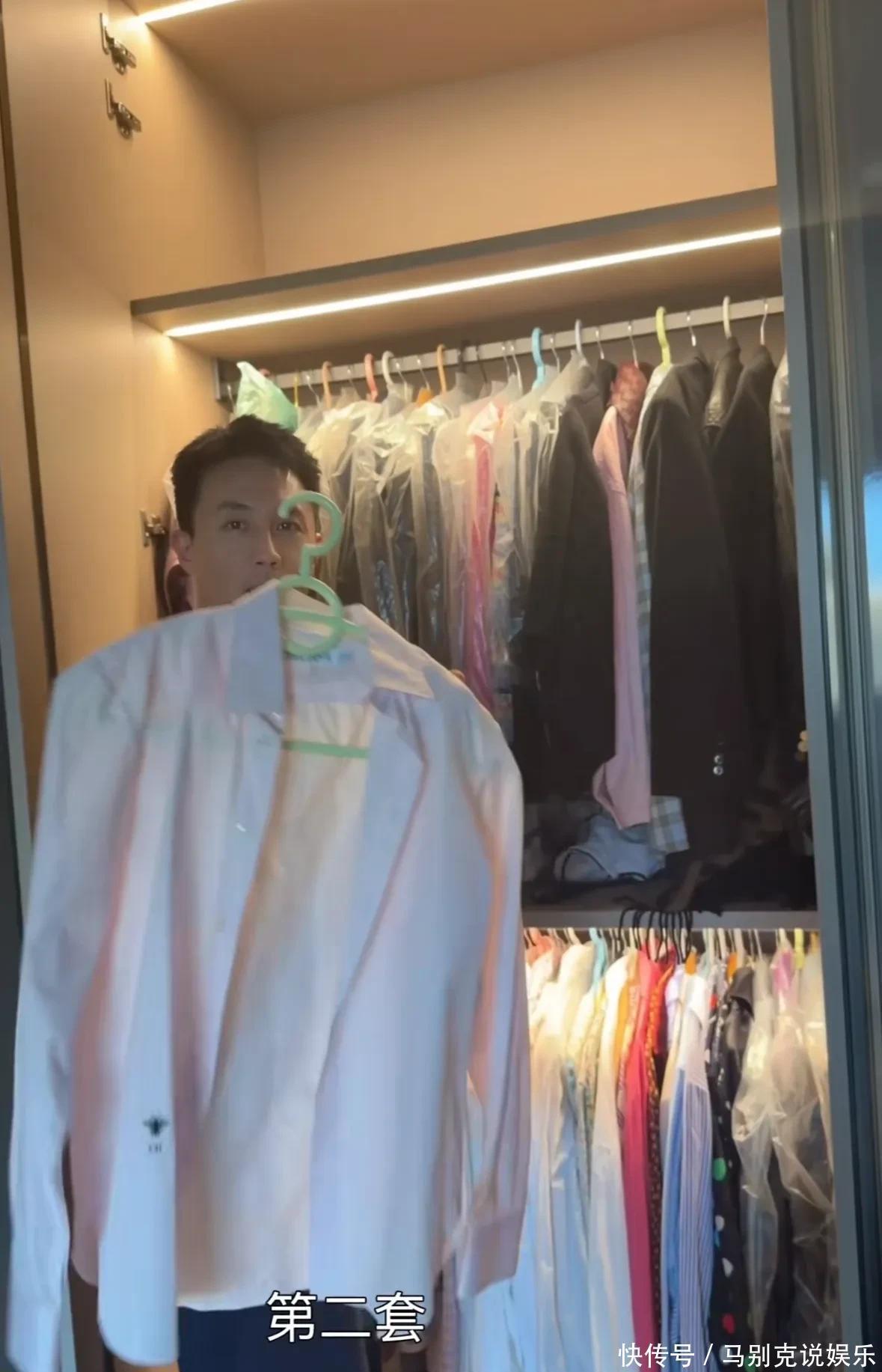 视频里,王灿打开衣柜让杜淳挑,杜淳随手拿了件白衬衫,简单清爽,俩人衣服分门别类,收拾得挺利索,有些还套着防尘袋,一看就是平常有人细心打理。